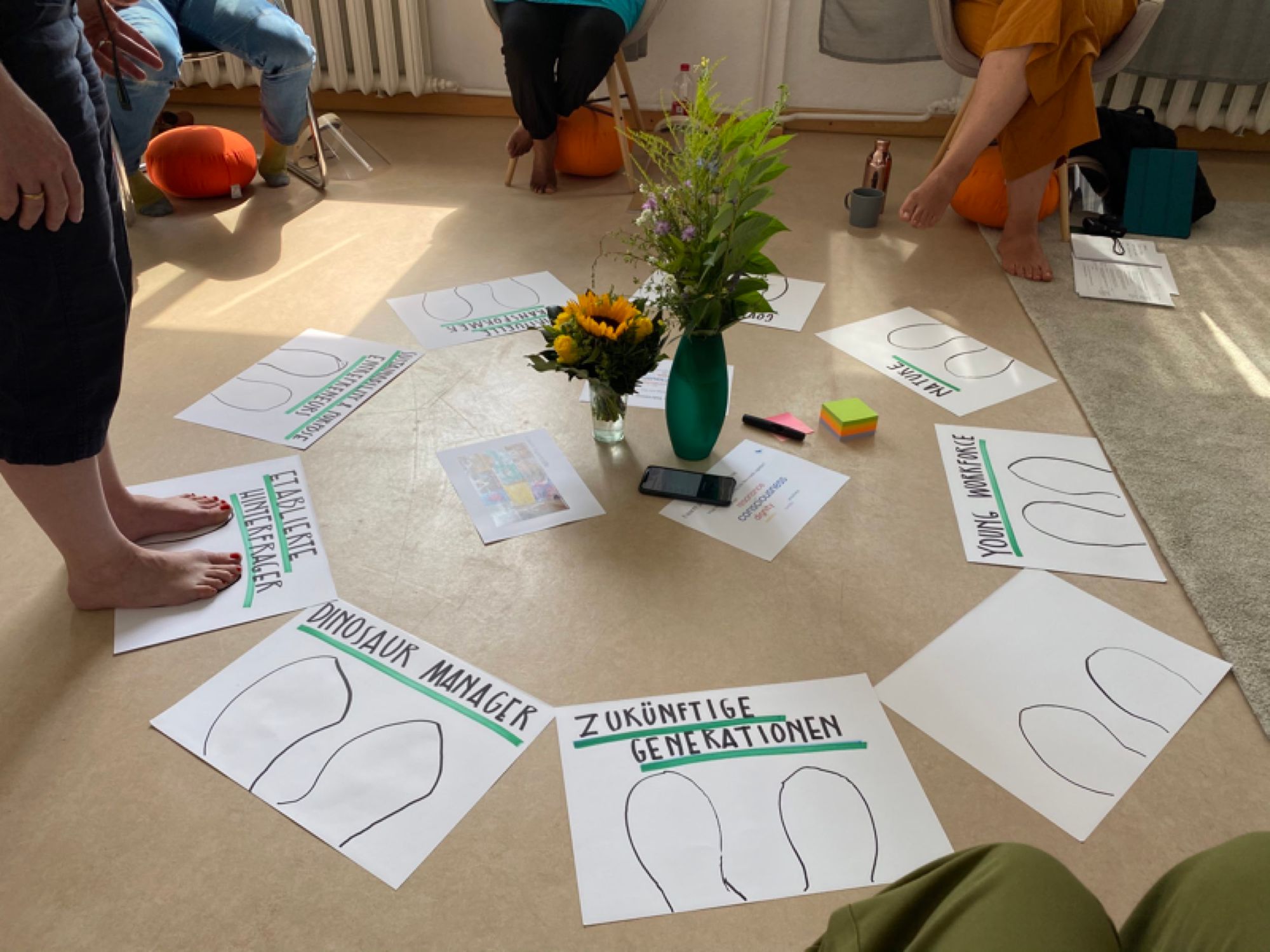 Schritt für Schritt führten wir die Gruppe und uns selbst durch die verschiedenen Phasen der Theory U: