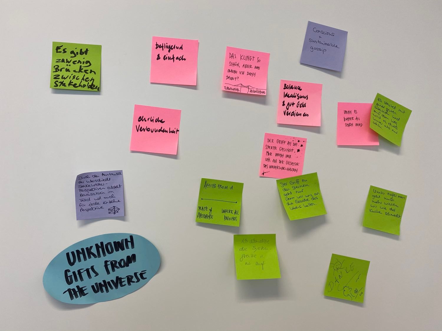 Jedoch hätten wir kaum für möglich gehalten, mit welchem Enthusiasmus uns diese Gruppe über ca. 5 Monate begleiten würde – und darüber hinaus zusammengewachsen ist. Und das, obwohl unsere gemeinsame Reise durch den U-Prozess genau in die Zeit des Frühjahrs-Lockdowns fiel, sodass wir kurzerhand viele Elemente, die als „Offline“-Methoden konzipiert waren, als Zoom-Call durchführten.