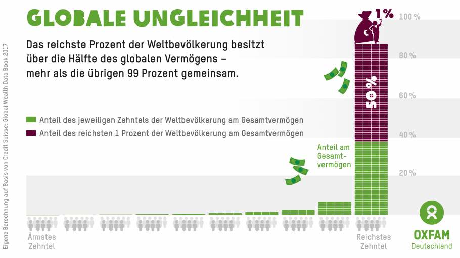 - Die Reichsten 1% der Welt besitzen 44% des gesamten Weltvermögens
