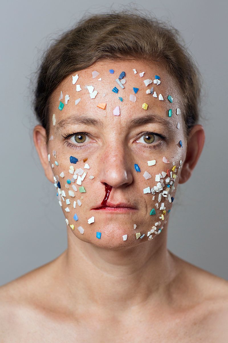 Die Frau mit den grünen Augen blickt ernst in die Kamera, ganz nah ist ihr Gesicht und gesprenkelt mit kleinen Plastikpartikeln. Ein starker Appell, der sagt: So weit ist es gekommen, dass wir das Plastik schon in unseren Gesichtern haben. Die Idee für dieses Selbstporträt der Künstlerin Swaantje Güntzel, mit dem sie auf Mikroplastik in Kosmetik aufmerksam macht, hat die Meeresschutzorganisation „Ocean. Now!“ zu ihrer Kampagne „In Your Face“ inspiriert. In gleicher Weise und Optik zeigten sich viele Prominente, wie Ranga Yogeshwar oder Luisa Neubauer, mit Mikroplastik im Gesicht. Mit ihrer Idee hat die Künstlerin viel Aufmerksamkeit für das Thema Mikroplastik geschaffen.